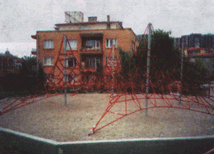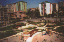 Resim 3: Galeria Alışveriş Merkezi, Ümitköy c. Macera oyun alanları: Macera parkları çocuklara kendi oyun alanlarını yaratmak için bir donanım sunar. Hiçbir şey sabit ya da statik değildir. Mekânda tavsiyelerde bulunan ve çocukların oyununda görev alan bir lider bulunur; bu kişi genellikle gönüllü bir yetişkindir (25). Çocukların mekândaki elemanları yaratıcı şekilde kullanması, kullanarak çevrelerini yeniden şekillendirmeleri beklenir. Oyun alanları içinde çocukların oyun ihtiyacını en çok karşılayan macera oyun alanlarıdır (26). d. Yaratıcı oyun alanları: Tasarım ve donanımda çeşitlenir. Genelde kum gibi şekillendirilebilir malzemeler bulunur. Tekerlekli araç alanı, su ve kum alanı, tırmanma, sallanma ve fantazi oyunu için karmaşık birimler bulunabilir. Yaratıcı oyun problem çözme konusunda çocuğa esnek bir yaklaşım kazanma fırsatı sağlar; ancak tasarımcı için bu oyunu sağlamak güçtür. Hareket ettirilebilen ya da değiştirilebilen esnek elemanlar daha çok yaratıcı oyunu sağlar (27). Geleneksel oyun donanımının yaratıcı oyunu azalttığı görülür (28). Oyun mekânı tasarımı a. Oyun alanı tasarımı aktif-pasif oyun, kurallı-kuralsız, dramatik-fantastik oyun, kas aktivitesi gibi farklı aktivitelerin ayrılmış ancak ilişkili bir bölgelemesi demektir. Oyun alanları arasında çocuk seçim yapabilmelidir. En sessiz olan aktiviteyi merkeze yerleştirip, aktif olanlar çeperlerde yer almalıdır (29). b. Çocuk oyun alanlarında dolaşım (sirkülasyon) döngüler şeklinde ve aktivite bölgelerini tarif eder şekilde olmalıdır. Temiz hareket alanına sahip, oyun araçları etrafında engel bulunmayan alanlar olmalıdır (30). Bahçelievler Fatih Terim Parkı, Ankara'da bu niteliklere sahip olan çocuk oyun alanlarından biridir (Resim 4). Geleneksel oyun alanlarına örnek oluşturan Fatih Terim Parkı'nda farklı oyun aktiviteleri döngüler içinde yer alır. Kavaklıdere Kuğulu Park'ta ise, bağlantılı oyun alanında benzer şekilde aktivite ayrılması olmasına karşın temiz kullanım alanlarına sahip değildir (Resim 5). Yoğun kullanıma sahip olan bu parkta dolaşım (sirkülasyon) sorunları görülmektedir. Resim 4: Fatih Terim Parkı, Bahçelievler Resim 5: Kuğulu Park, Kavaklıdere c. Büyümenin en önemli kısmı dünyayı deneyimleme olanağına sahip olmak, değiştirmek, bu değişimlerin sonuçlarını görmek ve tüm bu deneyimden öğrenmektir. Çocukların çevrelerini değiştirebilmeye gereksinimleri vardır. Bu nedenle oyun alanlarında kum, çakıl gibi malzemelerle çocuğa yeni strüktürler kurabilmesi için malzeme ve mekân sağlanmalıdır (31). Kum çocukların çevrelerini değiştirebilme ve biçimlendirme becerileri için gereklidir. 1886 yılında ilk kum havuzu Zakerzewska tarafından inşa edilir. Bu yaratıcı malzemenin kullanılmasıyla çocuk oyununa uygun malzeme seçimi gündeme gelir (32). Kum alanlar, kaydırakta ve salıncakta olduğu gibi kimin kullanacağı, nasıl kullanılacağına ilişkin karmaşa yaratır (33). Geleneksel bir oyun alanı olan Söğütözü Kardelen Parkı'nda kum alanlar sözü edilen türden bir karmaşa olmaksızın kullanılmakta, bu mekânda küçük çocuklara paralel oyun olanağı tanınmaktadır (Resim 6). Resim 6: Kardelen Parkı, Söğütözü d. Su güçlü bir mekân kurucu ve çocuk için önemli bir aktivitedir. Su her yaş çocuğu için bir oyun aracıdır. Ankara'da suyun Seğmenler Parkı'nda olduğu gibi görsel, Ümitköy Galeria ya da Gençlik Parkı'nda olduğu gibi rekreatif kullanımı söz konusudur. Suyun bir oyun aracı olduğu çocuk parkları kısıtlıdır. Geleneksel oyun alanlarından Ankara Kalesi Çocuk Parkı için suyun farklı bir kullanımı önerilebilir (Resim 7). Ankara Kalesi Parkı'nda mevcut olan bir duvar "su ile boyama" yapılabilecek bir olanağı ve yaratıcı olan yeni bir oyunu sağlayabilir. Resim 7: Ankara Kalesi Parkı, Ulus e. Çocuğa keşfetme, gözlem yapma, problem çözme, deneme-yanılma üzerinden gelişme ve öğrenme fırsatları verilmelidir. Çocuklar yeni becerileri test edebilmelidir. Her yeni mücadeleyi kazanma, vücuduyla neler yapabileceğini keşfeden çocuğun özgüvenini kurmasını sağlar (34). Keçiören Gökçek Park'ında yeralan ağ şeklindeki bir oyun strüktürü yeni becerilere, mekân ve oyun deneyimlerine olanak sağlamaktadır (Resim 8). Resim 8: Gökçek Parkı, Keçiören f. Çocuklar tırmanmayı ve yüksekliklere ulaşmayı severler. Bu noktadan çevrelerine ilişkin yeni bir perspektif edinirler. Yüksek yerler oyuna mücadele kazandırır. Ancak, bu konuda güvenlik başlıca noktadır. Çünkü, oyun araçlarındaki çocuk kazalarının %70 i düşmelerdir (35). Güvenlik hem planlama hem de detay tasarımı işidir. Tırmanma aracı altındaki yüzey düşmeye karşı bir malzeme olmalıdır (36). Çayyolu Koru Sitesi çocuk oyun alanları çocuk ölçeğinde oyun strüktürlerine sahiptir (Resim 9). Tırmanma aktivitesi de içeren bu strüktürler diğer bir çok oyun alanında olduğu gibi kum-çakıl alanlar içinde yeralmaktadır. Bir farklılık olarak Koru Sitesi'ndeki oyun alanlarında bu yumuşak zeminlerin temizliği, bakımı ve denetimi düzenli şekilde yapılmaktadır. Resim 9: Koru Sitesi, Çocuk Oyun Alanı, Çayyolu g. Çocuklar hızlanma hissinden ve motor koordinasyonun değişiminden hoşlanırlar. Bunu sağlayan araçlardan, örneğin, kaydıraklarda eğim zorluk derecesini etkiler. 30 derece ve daha az eğimlerde çocuk hızını kontrol edebilmektedir (37). Güvenevler Şili Meydanı Parkı tek bir oyun aracı, bir kaydıraktan oluşmaktadır (Resim10). Yukarıda değinilen oniki oyun aktivitesi içinden çok az sayıda aktiviteyi karşılayabilmesi nedeniyle, bu oyun alanı oyun potansiyeli düşük bir park olarak değerlendirilebilir. Resim 10: Şili Meydanı Parkı, Güvenevler h. Oyun mekân