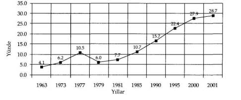 Kaynak: DPT, Birinci Beş Yıllık Kalkınma Plânı PLÂNLI KALKINMA Türkiye, 1930’lardaki sanayi plânları da dikkate alınırsa yaklaşık 70 yıllık bir plânlama deneyimine sahiptir. 1961 Anayasası ile kaynakların verimli kullanılması ve kalkınmanın hızlandırılması amacıyla ülkenin ekonomik, sosyal ve kültürel plânlama hizmetlerinin bir bütünlük içerisinde etkin, düzenli ve süratli olarak görülebilmesi için Devlet Plânlama Teşkilatı kurulmuştur. Kalkınma plânları, sosyal adalet ilkelerine uygun bir şekilde demokratik sistem içinde insan kaynaklarının geliştirilmesini, sermaye birikiminin sağlanmasını, istikrarlı ve yüksek bir büyüme hızına ulaşılmasını, dünya ile bütünleşilmesini ve Avrupa Birliğine üyelik sürecinin tamamlanmasını amaçlamıştır. Ülkenin beş yıllık kalkınma plânları ile bu plânların yıllık uygulama programları 1963 yılından itibaren yapılmaya başlanmıştır. Bundan sonraki bölümde, plânlarda yer alan yüksek öğretimle ilgili hedefler ve bu hedeflerin gerçekleşme durumu sırasıyla gözden geçirilecektir9. BİRİNCİ BEŞ YILLIK KALKINMA PLÂNINDA YÜKSEK ÖĞRETİM (1963-1967) Bu plânda, yüksek öğretim ülkenin ihtiyaç duyduğu işgücünü yetiştirme mekanizması olarak görülmüştür. Bu nedenle yüksek öğretim, insangücü, istihdam ve araştırma sektörleriyle bir arada ele alınmış, öğretim üyesi yetiştirilmesine yönelik politikalara ağırlık verilmiştir. Plânda, öğretmen ve eğitim yöneticisi açığı, koordinasyon eksikliği, eğitimdeki kalite yetersizliği, fırsat eşitliğini ortadan kaldıracak bir burs sisteminin olmaması, ödeme gücü olanlardan eğitime katkı payı alınmaması ve eğitim kurumları arasındaki yatay ve dikey geçiş sorunlarından bahsedilmektedir. Bu plânda; • Eğitimin her kademesinin toplumun en kabiliyetli elemanlarına açık tutulmasını sağlamak için yeterlik esasına dayanan seçme usullerinin uygulanacağı, • Her dereceden gece öğretimi yapan eğitim müesseselerinin kurulacağı, • Eğitimin her kademesinde burs imkânlarının geniş ölçüde artırılacağı, • Öğretmen yetiştiren kurumların gelişmelerine öncelik verileceği, • Eğitim kurumlarının yatırım maliyetlerini düşürmek, yapı satandardı sağlayacak bir organ kurmak, halkın inşaata katılmasını sağlamak, inşaatları bir inşaat mevsimi içinde bitirmek yönünde bütün mali ve hukuki tedbirlerin alınacağı, • Verimin çok düşük olmasına sebep olan belirli unsurların hızla giderileceği, • Öğretmenlik mesleğinin cazip hale getirileceği ve ek ders ücretinin artırılacağı, • Öğretim üyelerinden ve tesislerden geniş ölçüde yararlanılacağı ve öğretim üyesi yetiştirilmesi konusunun sürat ve önemle ele alınacağı, • Öğretim muhtevası ve usullerinin ıslah edileceği, • Öğretim yanında araştırmaya da öncelik verileceği, araştırma sonuçlarının uygulayıcılara ulaşması amacıyla yayımlanacağı, • Öğrencilerin yetişme seviyelerini yükseltecek lojman, beslenme ve beşeri ilişkilerle ilgili şartların hızla düzeltileceği hedeflenmiştir. Plân dönemi sonunda, eğitimle çevre ve iş hayatı arasında yeterli ilişkinin kurulamadığı; kabiliyetli olanların eğitimin en üst kademelerine kadar yükselmelerini sağlayıcı bir sistem, burs ve yurt imkânının yaratılamadığı; öğretmen açığı ve dağılım dengesizliği nedeniyle eğitim kalitesinin yükseltilemediği; öğretim üyesi açığının yeni üniversite ve yüksekokul açılmasını sınırladığı; öğretim üyesi yetiştirmek amacıyla yurt dışına burslu olarak 3000 öğrenci gönderme hedefine karşılık ancak 500 öğrencinin gönderilebildiği; üniversiteye olan aşırı talep nedeniyle öğretim üyesi başına düşen öğrenci sayısının 1960’da 50 iken 1963’te 90’a çıktığı; ancak 1965-66 döneminde öğrenci sayısının 97.600’e ve okullaşma oranının ise yüzde 4,9’a ulaştığı ifade edilmiştir. İKİNCİ BEŞ YILLIK KALKINMA PLÂNINDA YÜKSEK ÖĞRETİM (1968-1972) Bu plânda eğitim başlı başına bir sektör olarak ele alınmış, ancak birinci plânda olduğu gibi bu plânda da yüksek öğretimin tümüyle insangücü ihtiyaçlarını karşılamak amacıyla geliştirilmesi gerektiği vurgulanmıştır. Ayrıca, kapasite artışı için mevcut yüksek öğretim kurumlarının geliştirilmesi ve yenilerinin açılması öngörülmüştür. Bu plânda; • Yüksek öğretimde kapasite artışının özellikle yüksekokullarda yaratılacak ek kapasite ile sağlanacağı, • Nitelikli olması için yüksekokulların üniversitelere bağlı olarak kurulacağı, • Öğretim üyesi açığı giderildikten sonra, mevcut yüksekokullardan yararlanarak yurt sathında yeni üniversitelerin açılabileceği, • Üniversite açma konusunun ayrı bir proje olarak ele alınacağı ve bunun için uzun süreli hazırlıkların yapılacağı, • 1968-1972 yılları arasında öğretim üyesi yetiştirmek amacıyla 3000 öğrencinin yurt dışına gönderileceği, • Asistanlık ve öğretim üyeliğinin cazip hale getirileceği ve doktora yapmış asistanların doğrudan doğruya ders vermelerinin sağlanacağı, • Büyük merkezlerdeki öğretim üyelerinin, eleman açığı bulunan taşradaki üniversitelerde belirli süre çalışmalarının sağlanacağı ve bunun için ek imkânların temin edileceği, • Hızla gelişmesi gereken üniversitelere gerekli esnekliklerin sağlanacağı, • Üniversiteler arası iş birliğinin sağlanması ve ilgili çalışmaları yapmak üzere üniversiteler arası bir kurum kurulmasının teşvik edileceği, • Mezun öğrencilerin alanlarıyla ilgili istihdam edilmeleri ve bu amaçla takip edilmelerinin sağlanacağı, • Eğitim ve araştırma kapasitesini artırmak için üniversitelere kaynak s