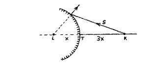 Bir tümsek aynadan 3x uzaklıktaki K noktasında bulunan bir ışıklı cisimden çıkan S ışını şekildeki yolu izliyor. L-T arası x olduğuna göre;